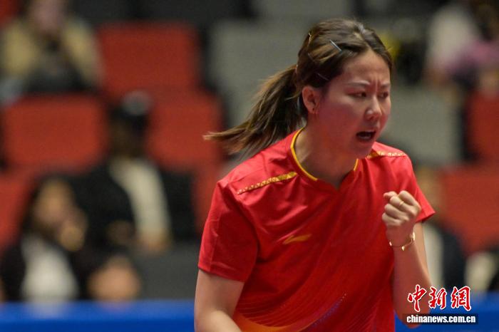 图为孙颖莎正在角逐中。记者 旧永诺 摄