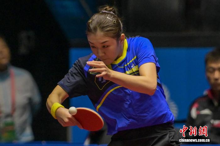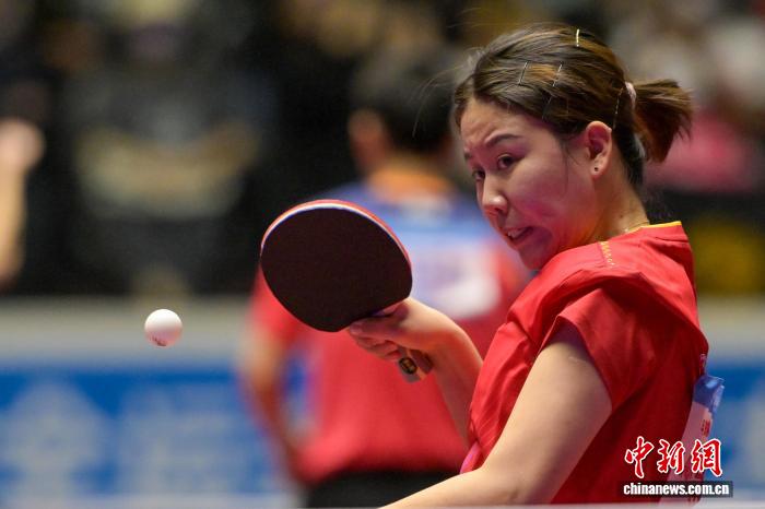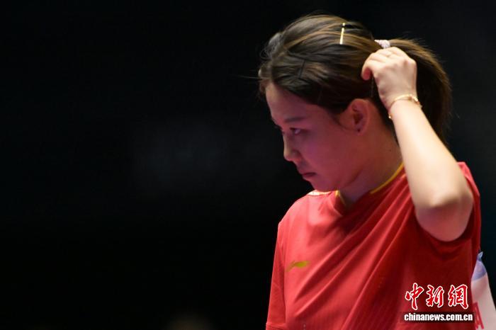 图为孙颖莎正在角逐中。记者 旧永诺 摄